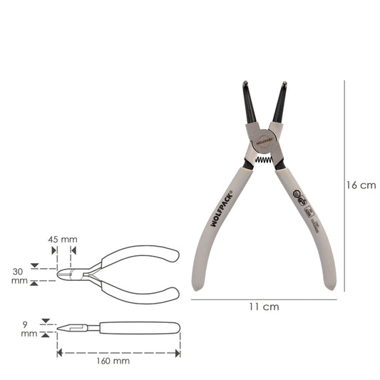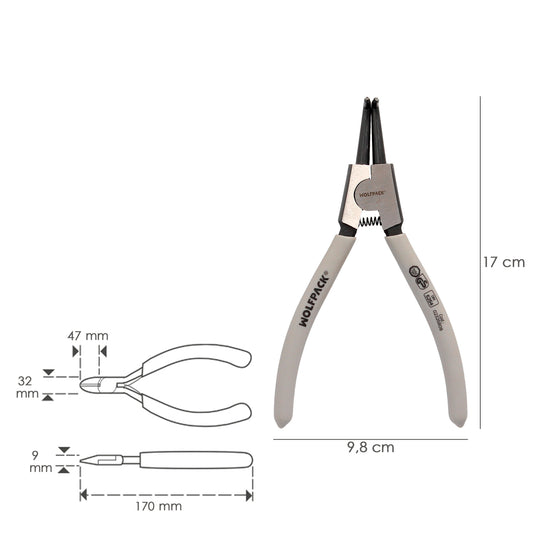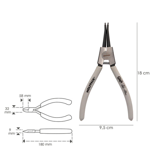 Alicates Arandelas Exteriores Curvo 175 mm. Acero Din 5254. Anillos De Presion, Anillos De Retención, Arandelas Circlips