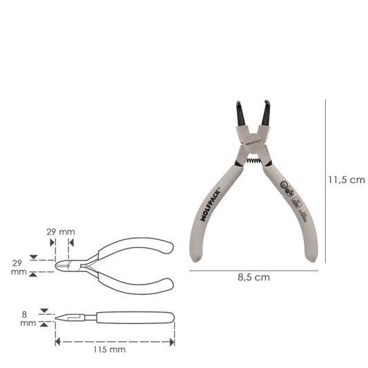 Alicates Arandelas Exteriores Curvo 125 mm. Acero Din 5254. Anillos De Presion, Anillos De Retención, Arandelas Circlips