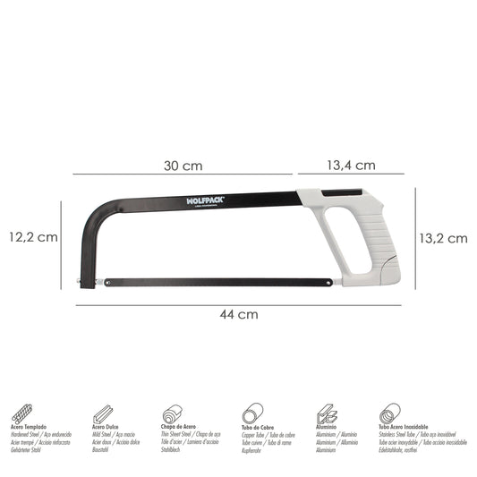 Arco Sierra Acero Con Empuñadura de Aluminio Angulo Corte Ajustable. Corta Acero, Aluminio, Madera, Plastico, Cobre