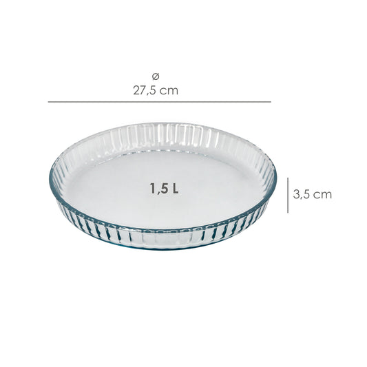 Molde Rizado Horno Cristal Borosilicato Ø 28 cm. Ideal Postres, Cocina, Resposteria, Tartas, Quiche, Libre BPA