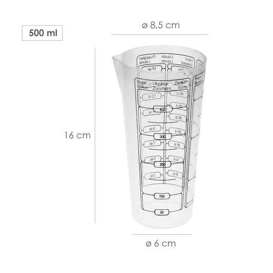 Vaso Medidor Plastico Oryx 500 ml. 8,5x6x16 cm.