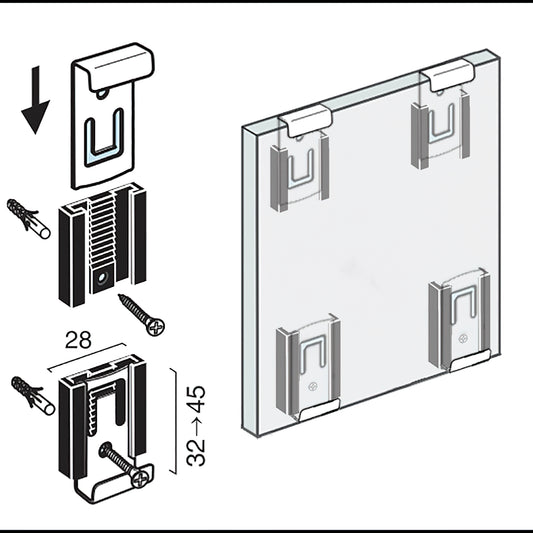 Grapa Espejo Graduable Inoxidable 25x30 Juego 4 piezas