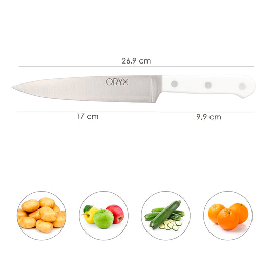 Cuchillo Husky Verduras 17 cm. Hoja Acero Inoxidable, Cuchillo Verduras, Cuchillo Cortar Verduras Mango Ergonomico Blanco