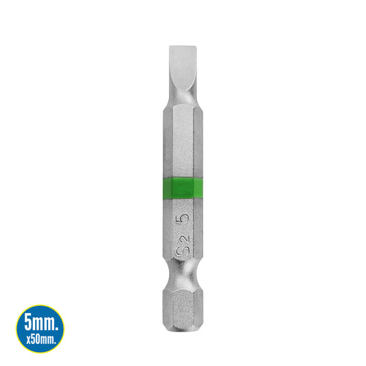 Puntas Destornillador Largo Plano 5 mm. (2 Piezas). Acero S2 al Cromo Vanadio. Puntas Hexagonales, Destorpuntas,