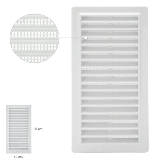 Rejilla Plastico Empotrar Con Malla Posterior 25x12 cm.