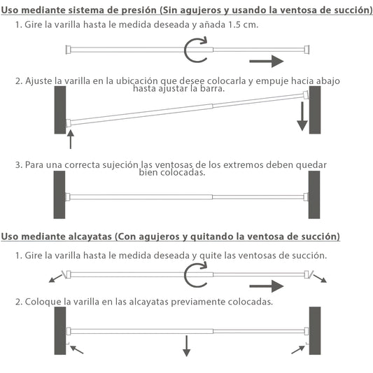 Barra Visillo Extensible 23/38 cm. con Muelle Presion, Soportes y Ventosas (2 Piezas)