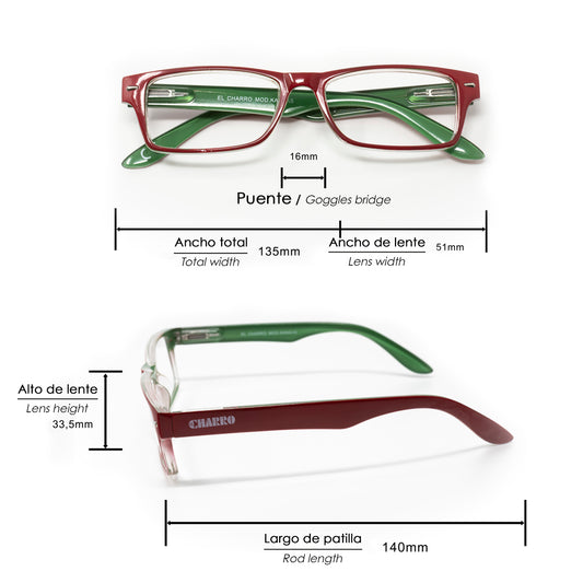 Gafas Lectura Kansas Rojo / Verde. Aumento +2,5 Gafas De Vista, Gafas De Aumento, Gafas Visión Borrosa