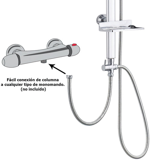 Columna Ducha Universal Multifuncional Completa Cuadrada, Acero inoxidable, Rociador Alcachofa Efecto Lluvia 22,5x22,5 cm.