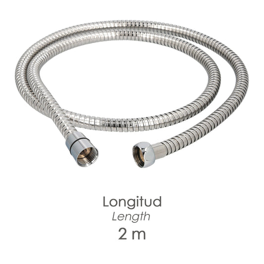 Flexo / Manguera Ducha Acero Inoxidable 2,00 Metros Accesorios de Latón. Flexible, Resistente a Torceduras, Conexión Estandar