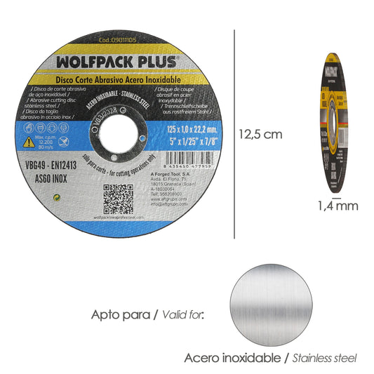 Disco Corte Abrasivo Acero Inoxidable Ø 125 x 22,2 Mm. Espesor 1,0 Mm.