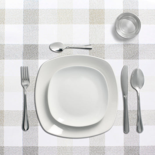 Mantel Hule Rectangular Cuadros Beis. Impermeable Antimanchas PVC 140 cm. x 20 metros. Rollo Recortable. Interior y Exterior
