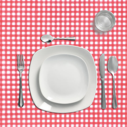 Mantel Hule Rectangular Cuadros Rojos Impermeable Antimanchas PVC 140x250 cm. Recortable Uso Interior y Exterior