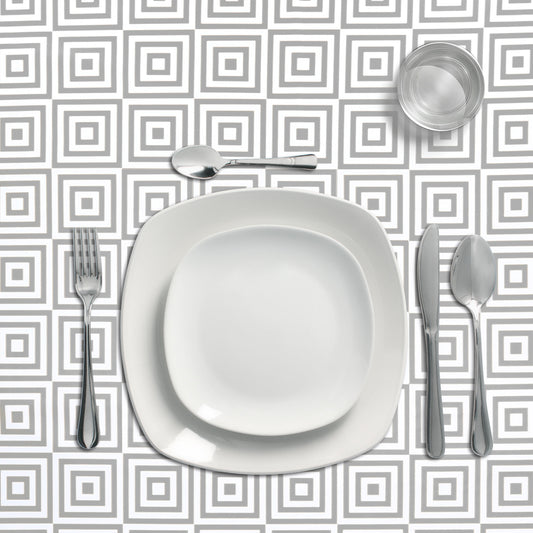 Mantel Hule Rectangular Rombos Grises Impermeable Antimanchas PVC 140x250 cm. Recortable Uso Interior y Exterior