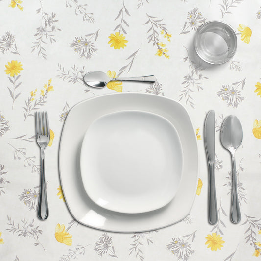 Mantel Hule Redondo Flores Amarillas Impermeable Antimanchas PVC Ø140 cm. Uso Interior y Exterior