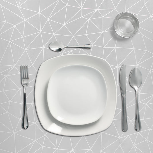 Mantel Hule Rectangular Geométrico Gris Impermeable Antimanchas PVC 140x250 cm. Recortable Uso Interior y Exterior