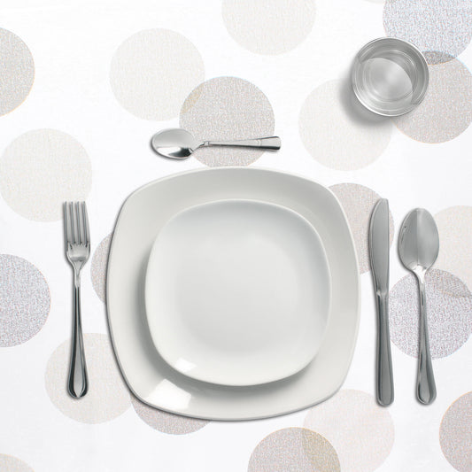 Mantel Hule Rectangular Circulos Beige Impermeable Antimanchas PVC 140x250 cm. Recortable Uso Interior y Exterior