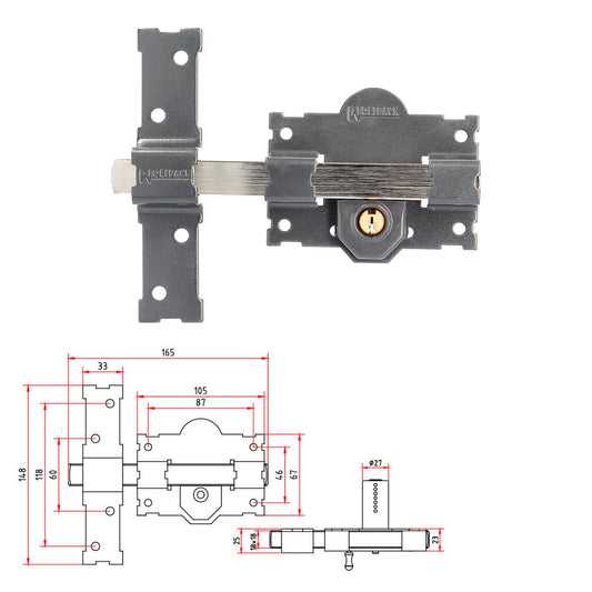 Cerrojo B-1 llave y pulsador pasador de 161mm cilindro redondo de 50mm