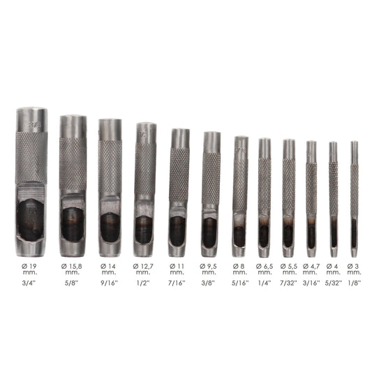 Juego Sacabocados Golpe 12 Piezas 3 a 19 mm