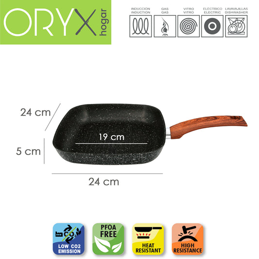 Sarten Aluminio Forjado Antiadherente 24x24x4,5 cm. Mango Engomado / 5 capas / Acabado Piedra / Todo Tipo de Cocinas / Grill
