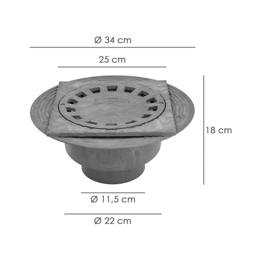Sumidero Sifónico Pvc 25x25 cm. Salida De Ø 90 / 110 mm. desagüe, Desaguadero, Tragadero, Alcantarilla,