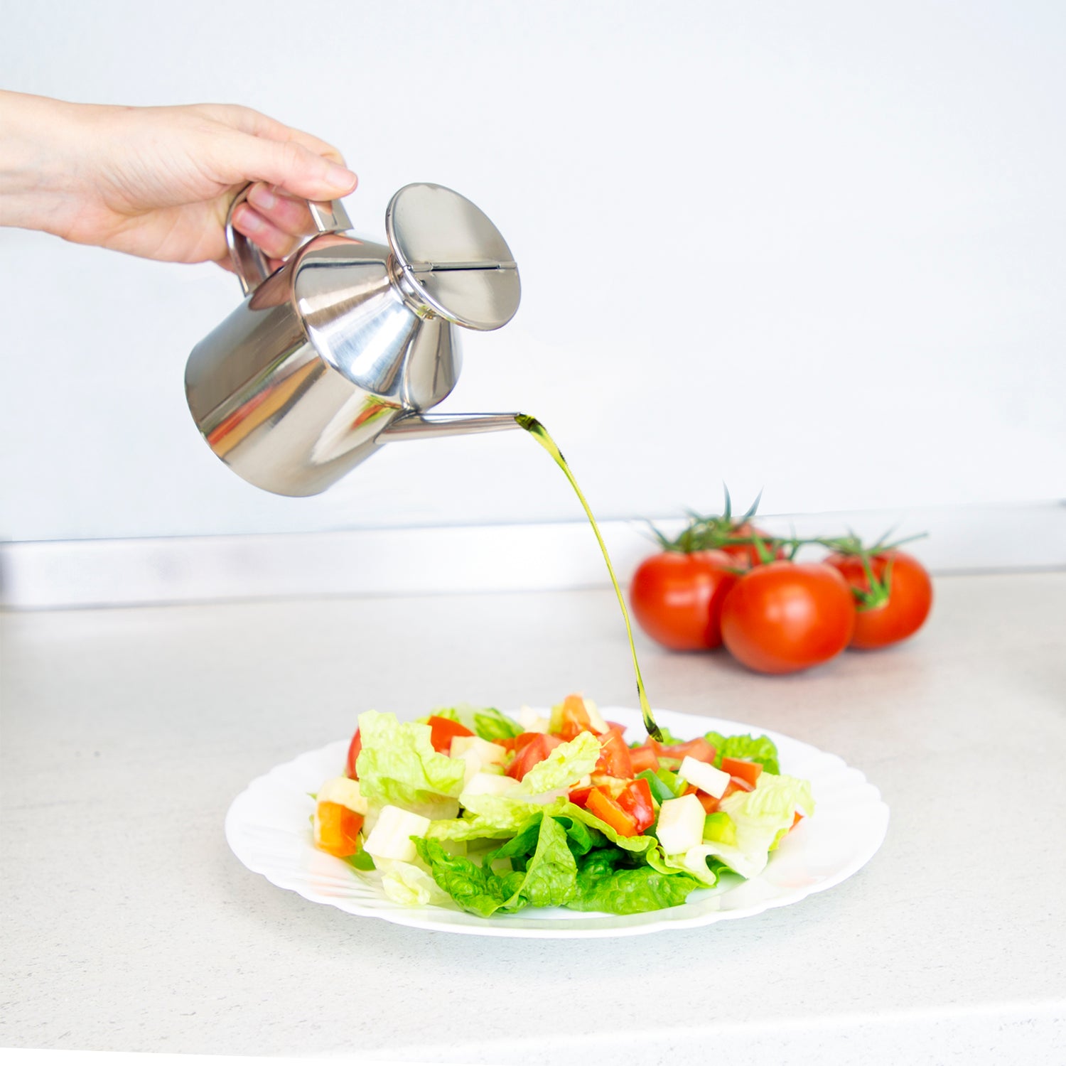 - Fácil de usar e ideal para dispensar aceite en sus ensaladas, comidas, cenas, desayunos, etc.