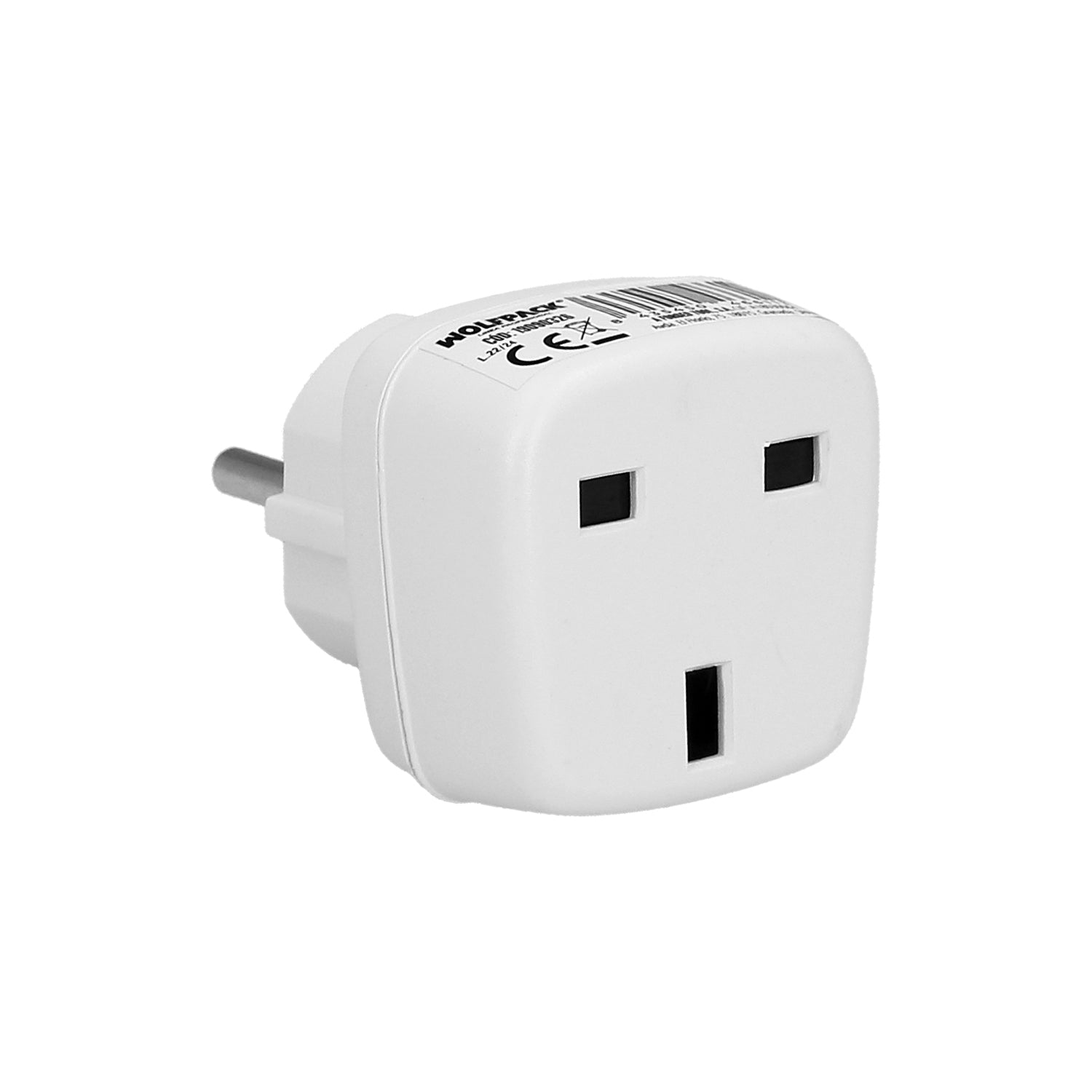 - Adaptador de viaje para viajeros de los siguientes países: Reino Unido, Hong Kong, Dubái, Emiratos Árabes Unidos, Chipre, Malta a países europeos.