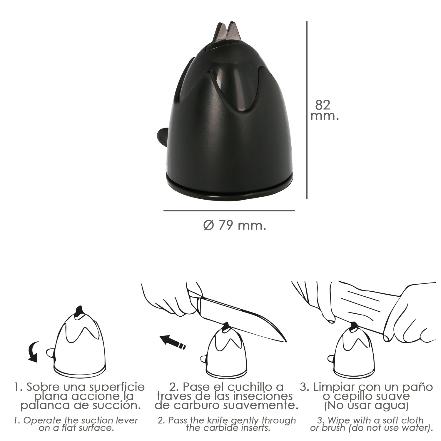 - Afilador de ventosa de 1 etapa de nueva generación, que gracias a su potente ventosa, permite estar fijo mientras se realiza el afilado.