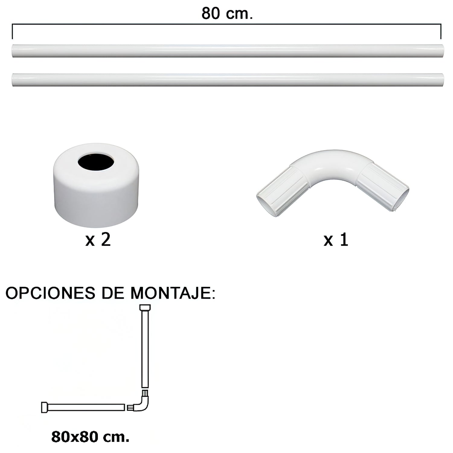 Barra Para Cortina Ducha Universal Aluminio Blanco 80x80 cm.