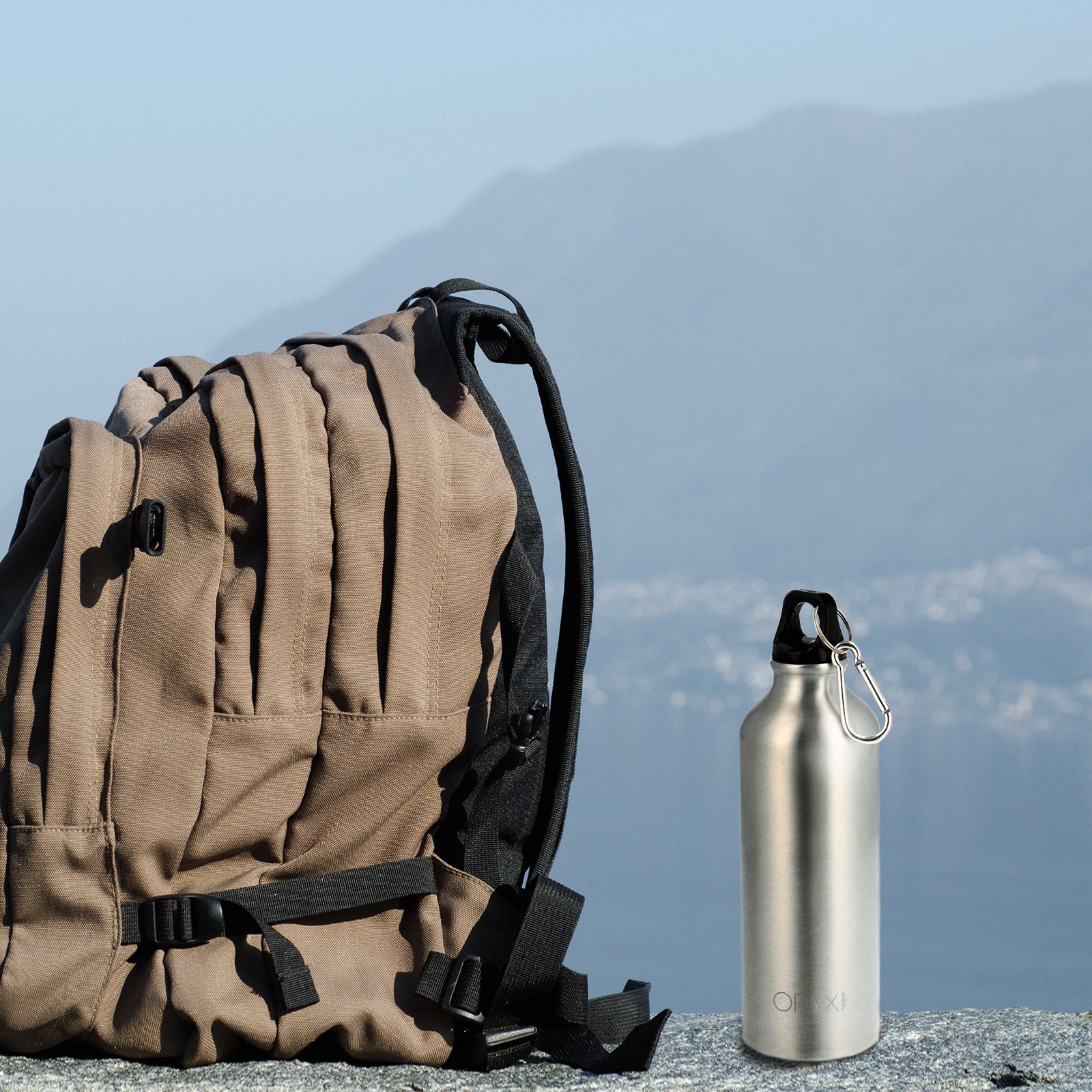 Botella de Agua Aluminio Con mosqueton, Cierre hermetico 500 ml.