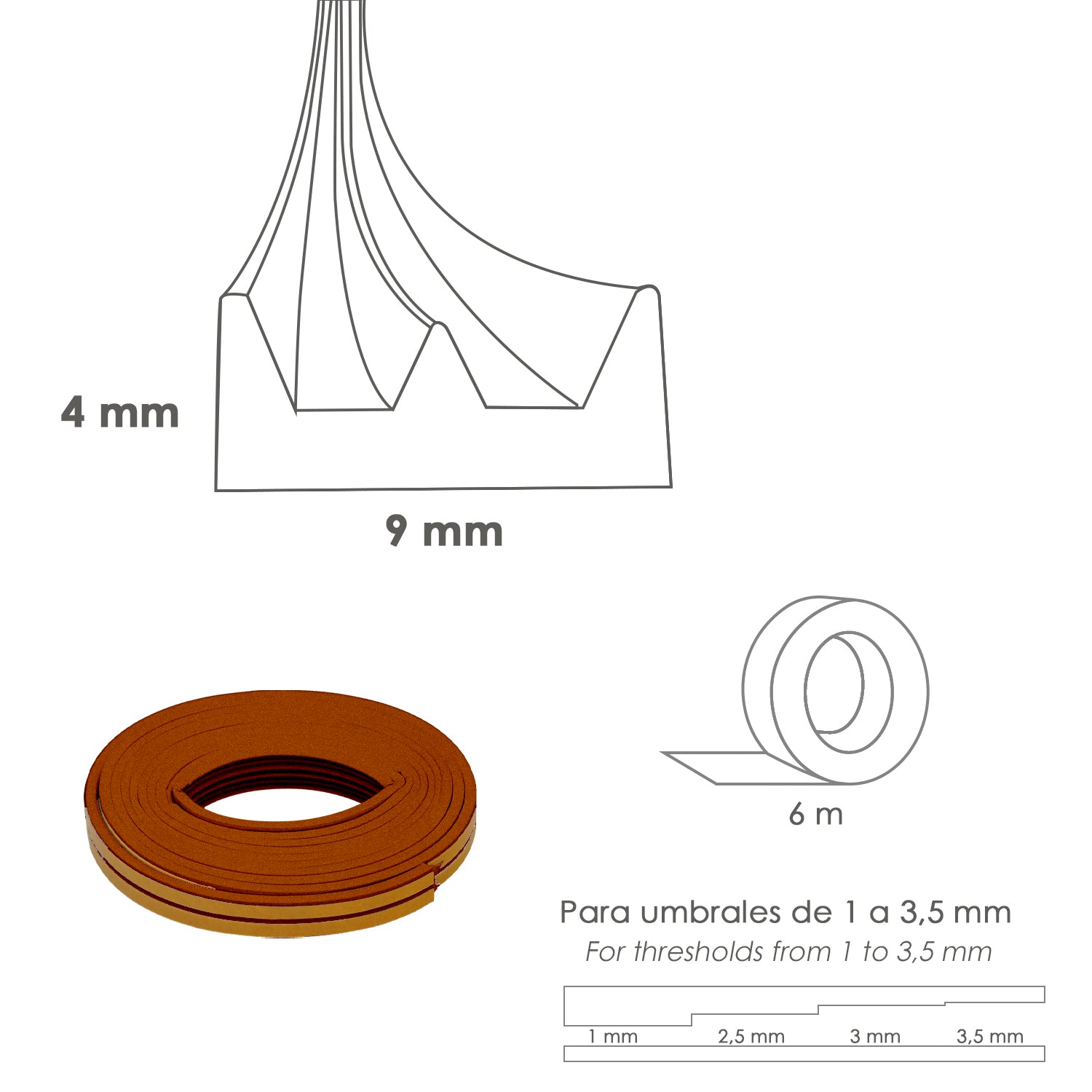 - De 6 metros de largo y 9 mm de ancho, ideal para garantizar un sellado perfecto en tus ventanas.