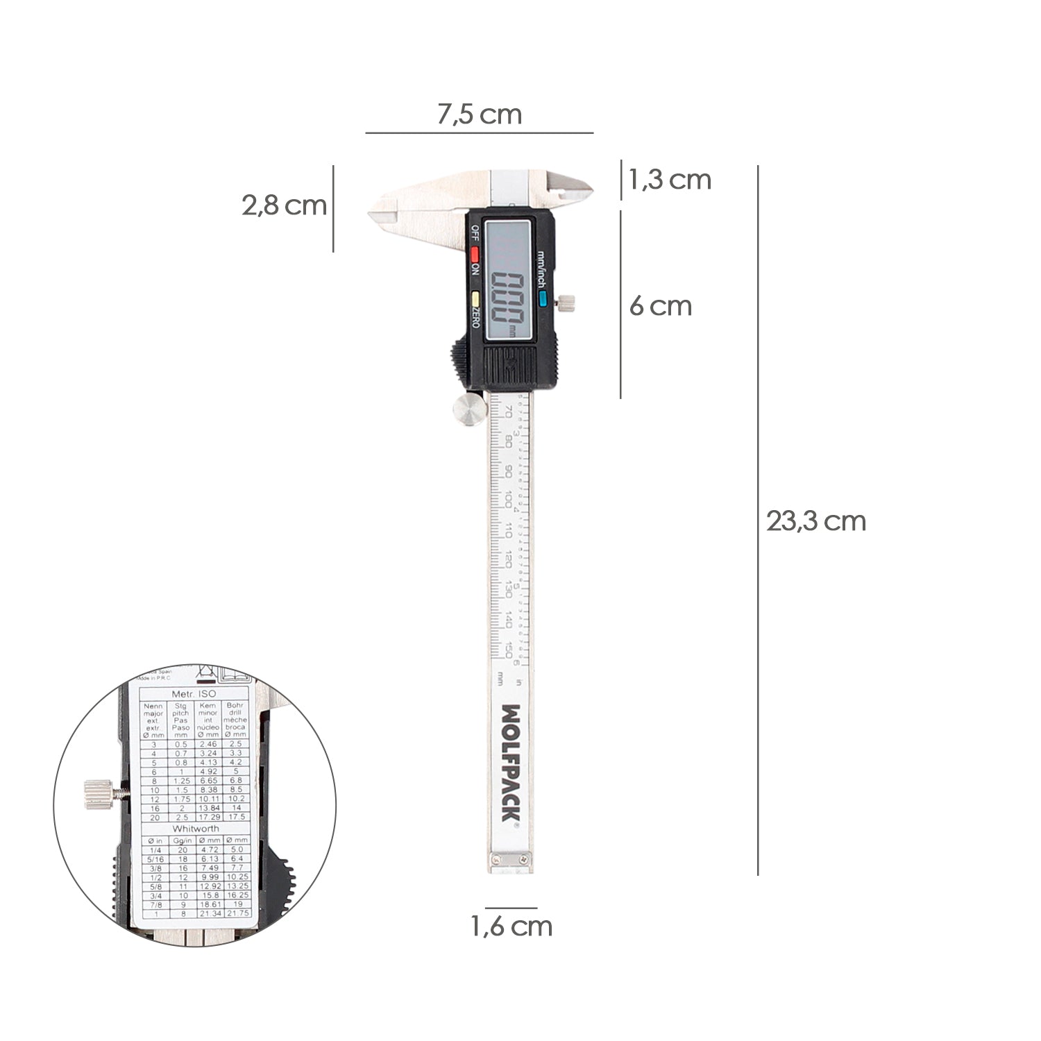- Longitud máxima que puede medir : 150 mm.