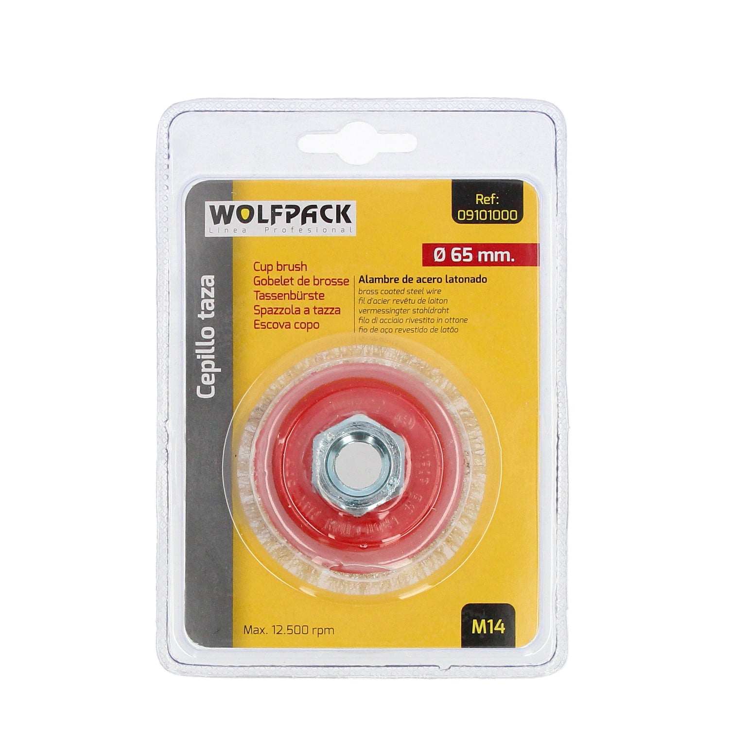 Cepillo Taza Con Alambre De Acero Latonado Rosca M14, Ø 65 mm. Alambre de Ø 0,30 mm.