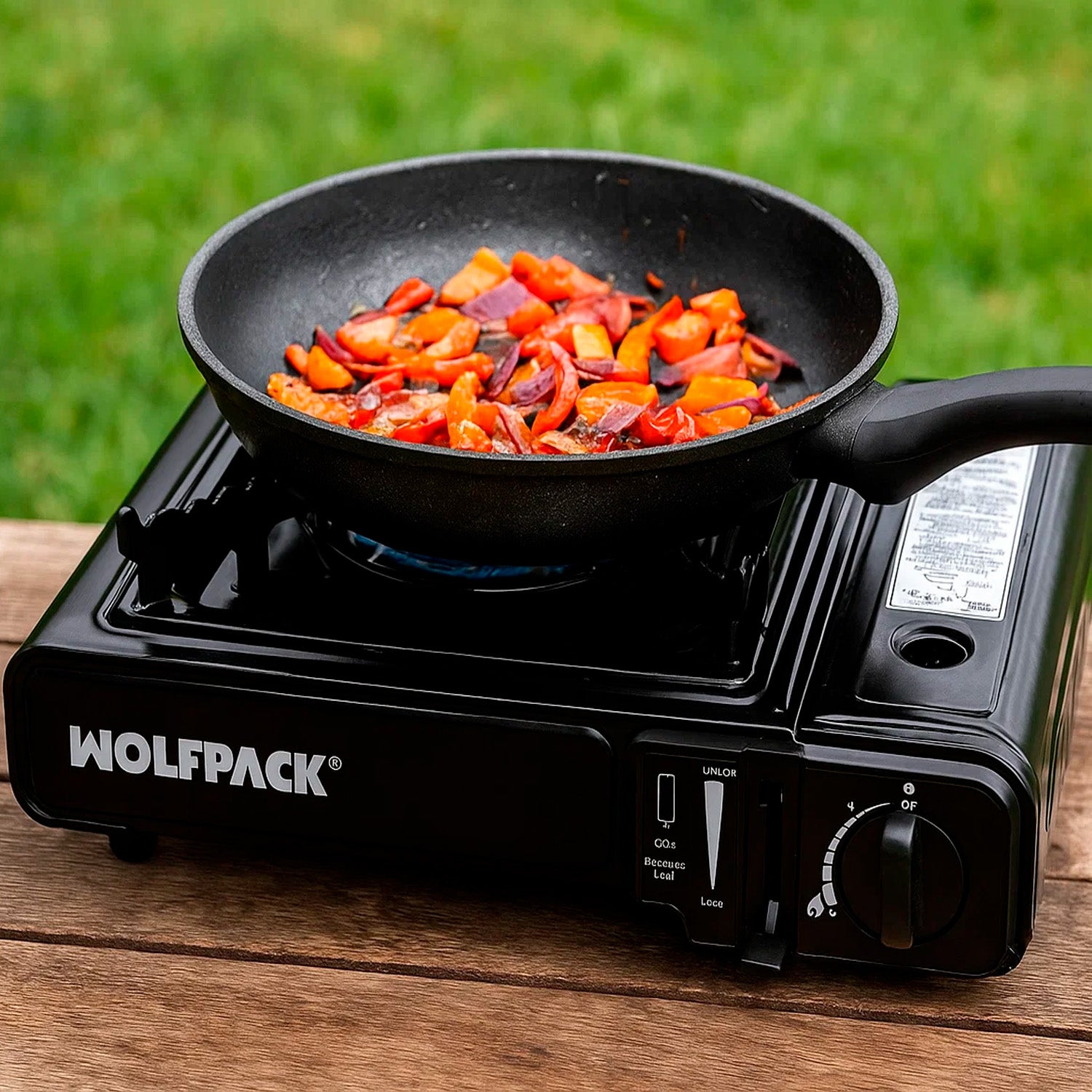 - Gracias a su diseño portátil, es ideal para llevarlo contigo en actividades como camping, jardín, terraza o playa. Asimismo, el bloqueo de seguridad incorporado en este hornillo de gas proporciona tranquilidad durante su uso.