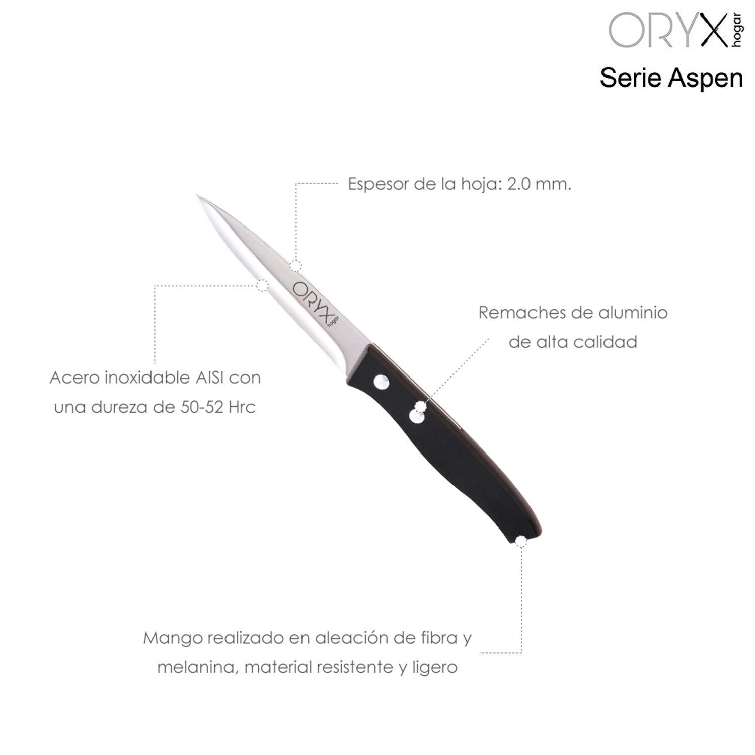 - La serie Aspen destaca por el equilibrio de sus cuchillos teniendo el centro de gravedad idoneo, usando estos cuchillos te sentiras comodo para realizar los mejores cortes.