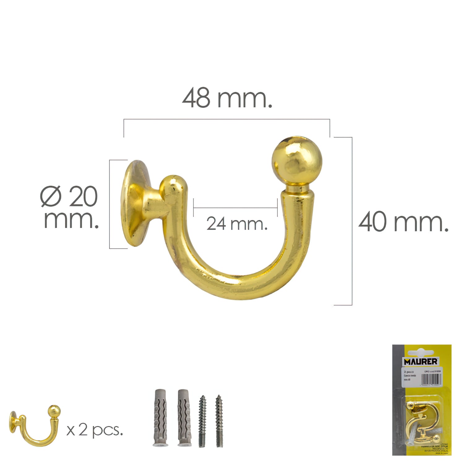 Gancho Latonado Atornillabe 48 mm. Con tacos y tornillos (Blister 2 piezas)