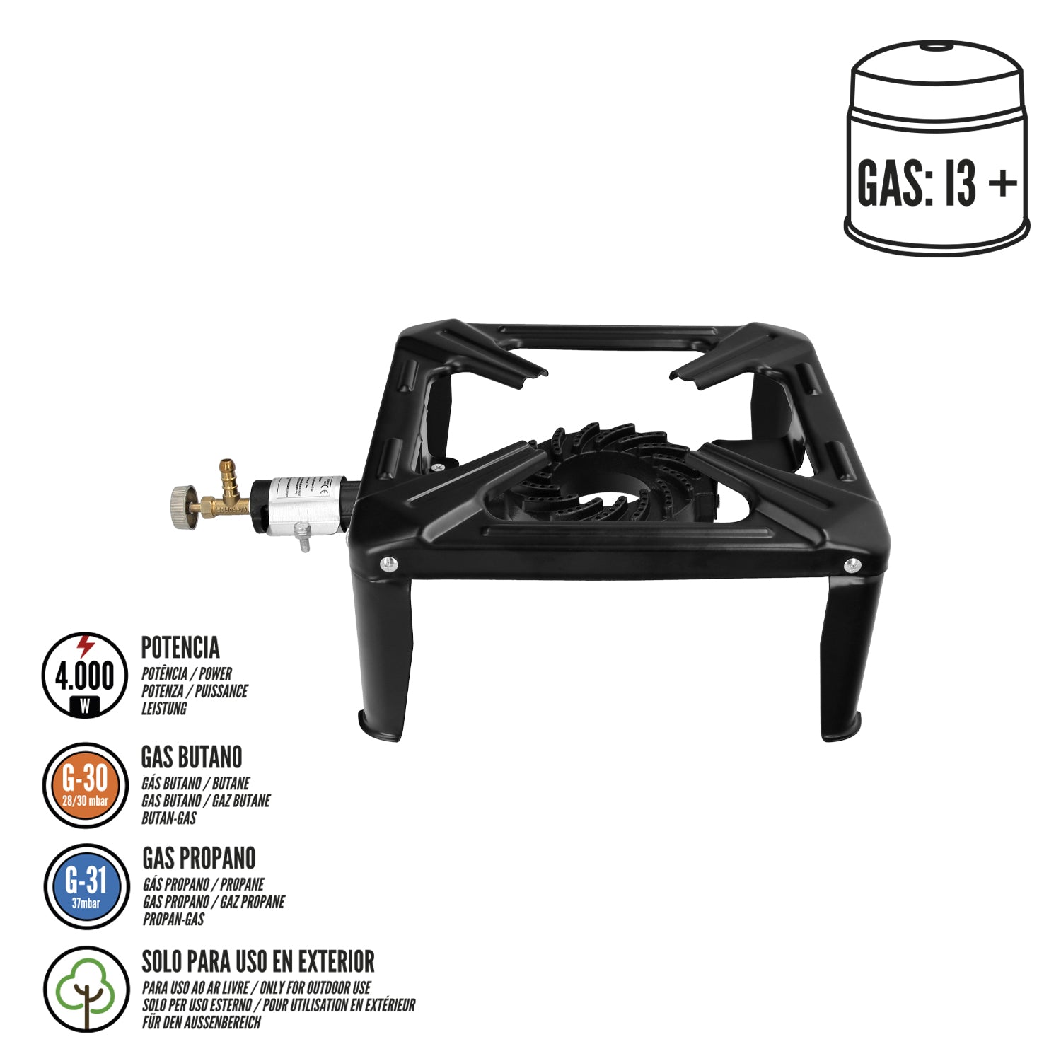 Hornillo Gas 4 Pies 30x30 cm. Potencia 4.000 Watts.