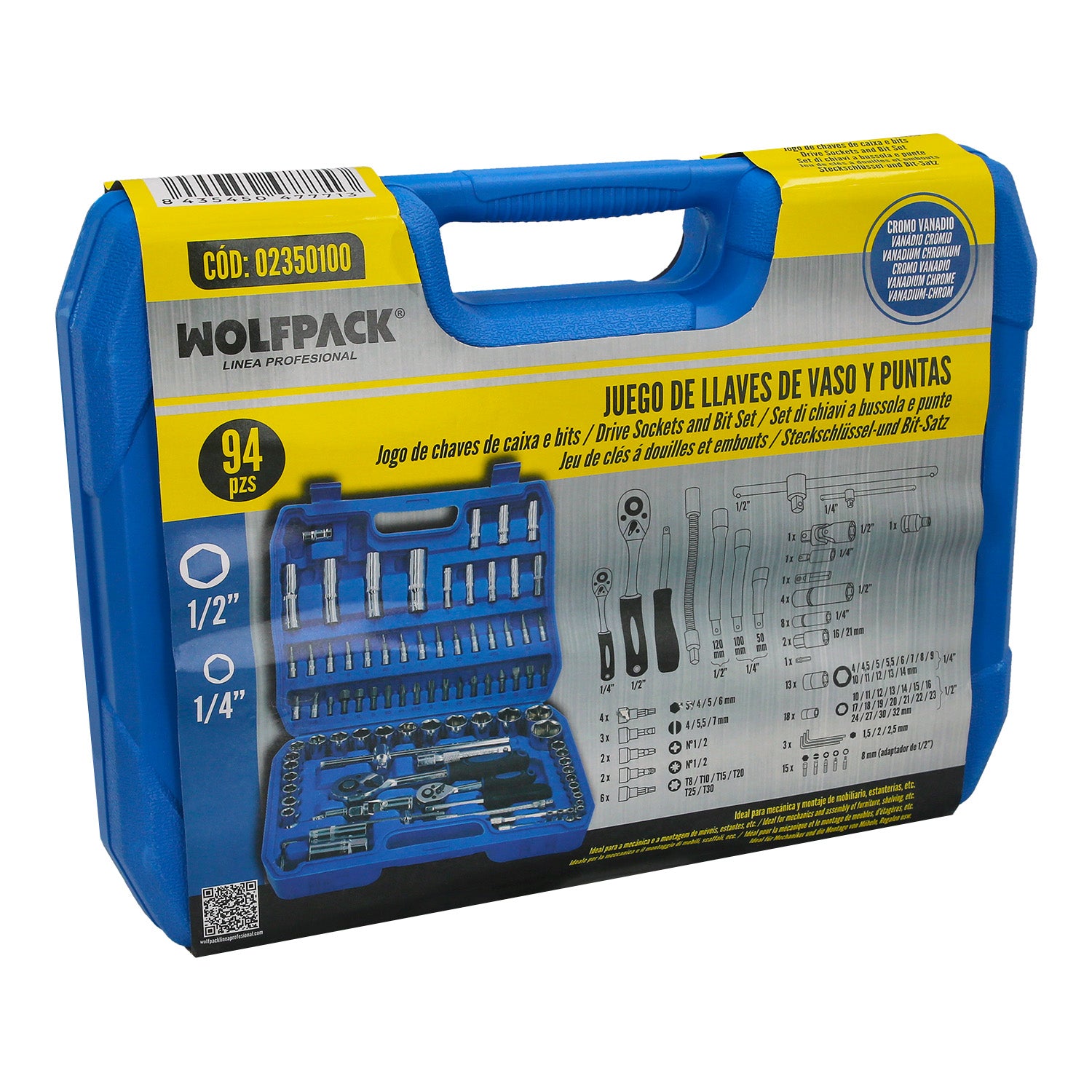 Juego Llaves Vaso y Puntas CRV 94 piezas 1/2" - 1/4"