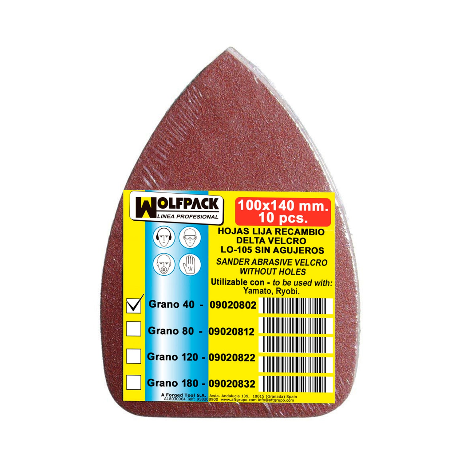 Lija Recambio Delta 140x100 mm. Sin Agujeros Grano 40 (10 Piezas)