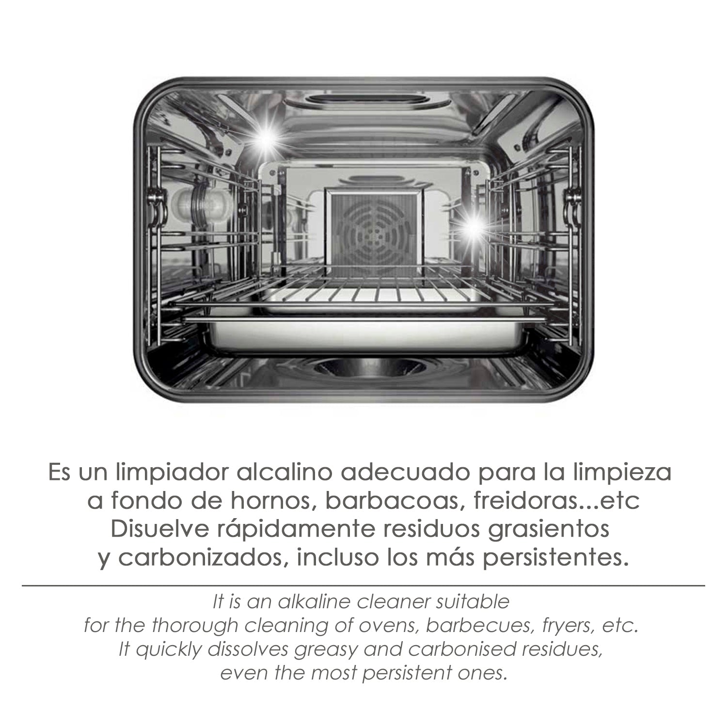 - Es un limpiador alcalino adecuado para la limpieza a fondo de hornos, barbacoas, freidoras, etc.