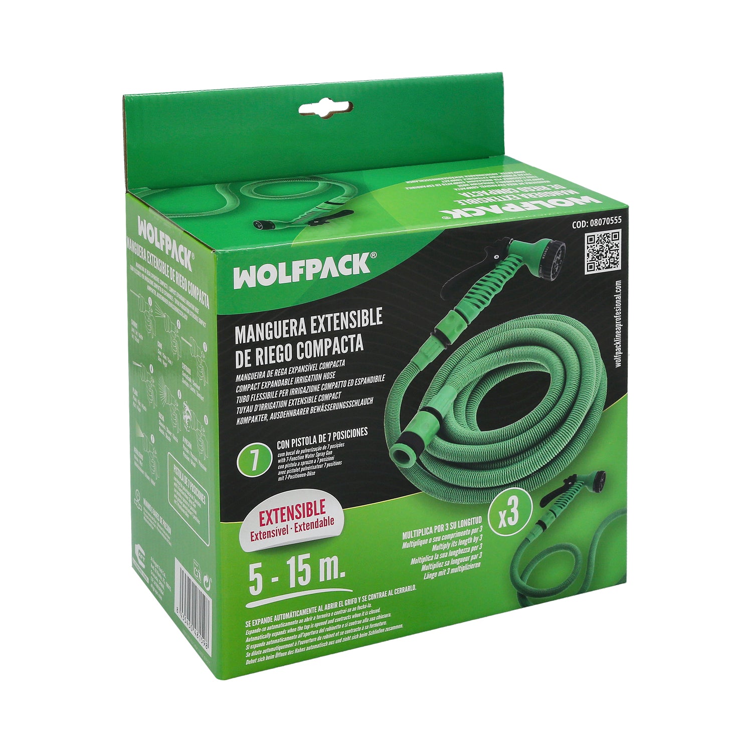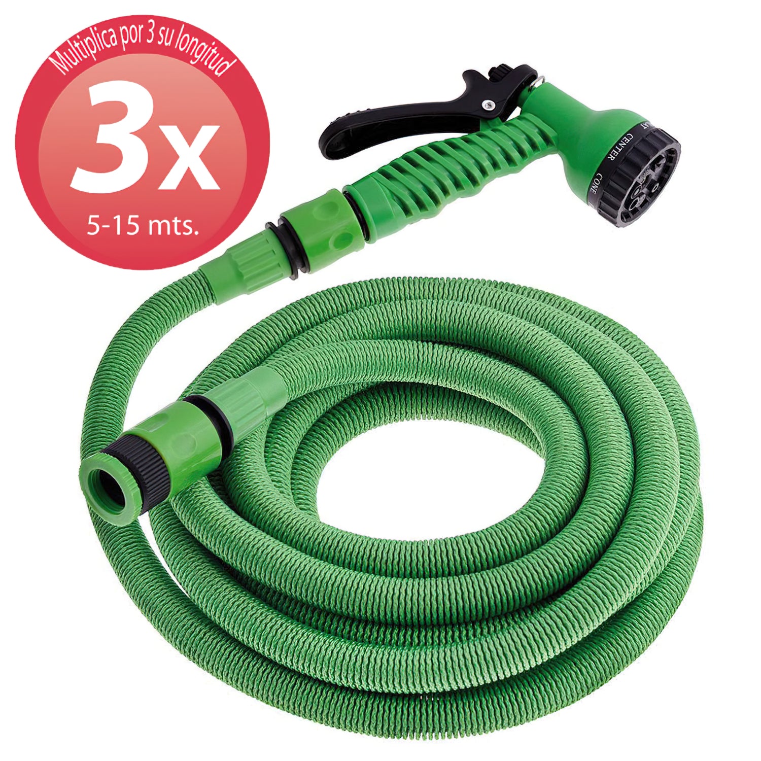Manguera Extensible Riego Compacto 5 A 15 Metros Con Pistola 7 Posiciones