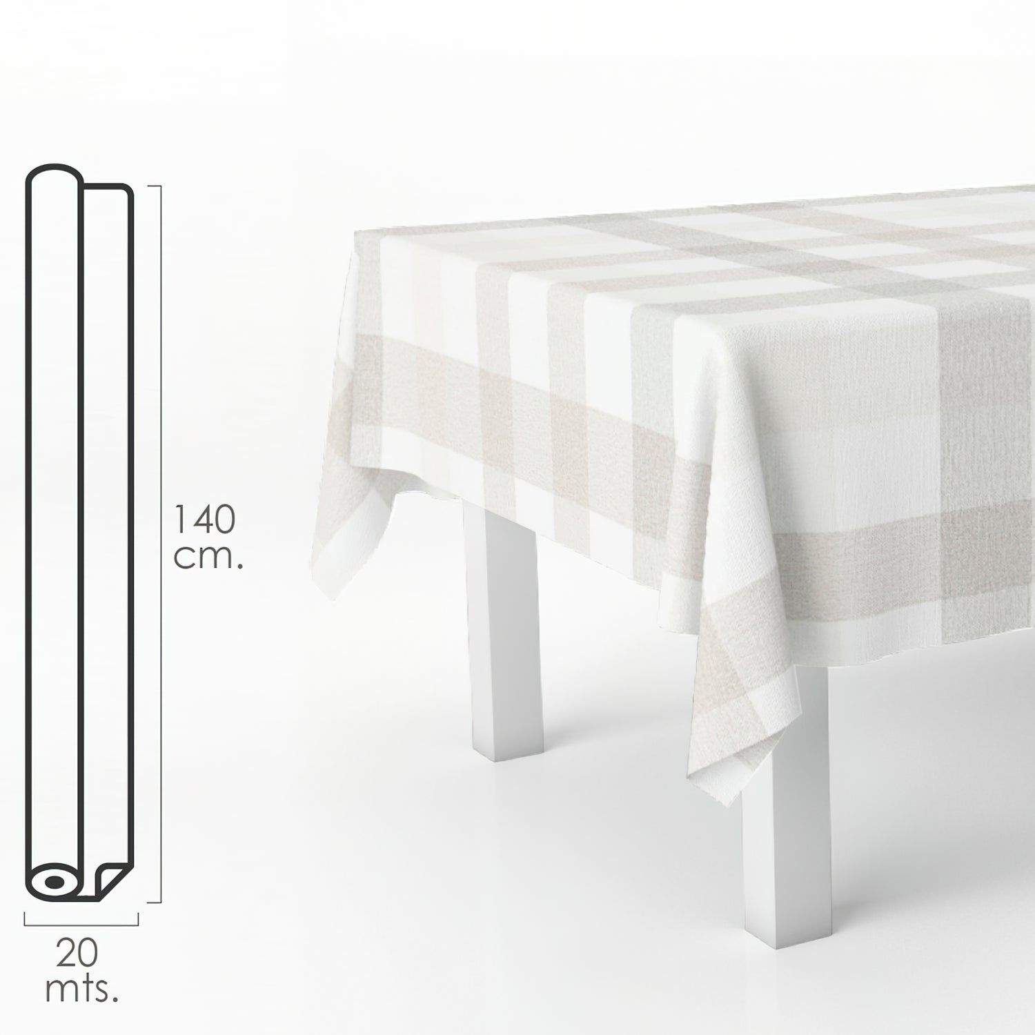 Mantel Hule Rollo 140 x 20 metros. Cuadros Beige