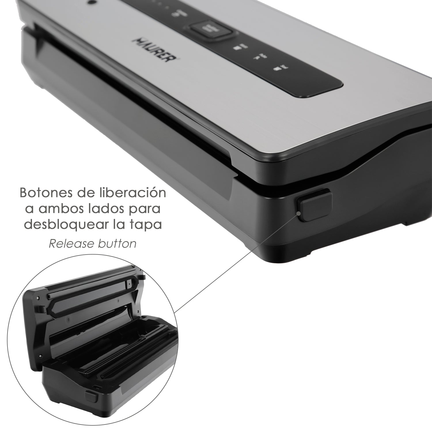 - Máquina para envasar alimentos al vacio, con gran poder de succión, para garantizar un sellado fuerte y duradero.