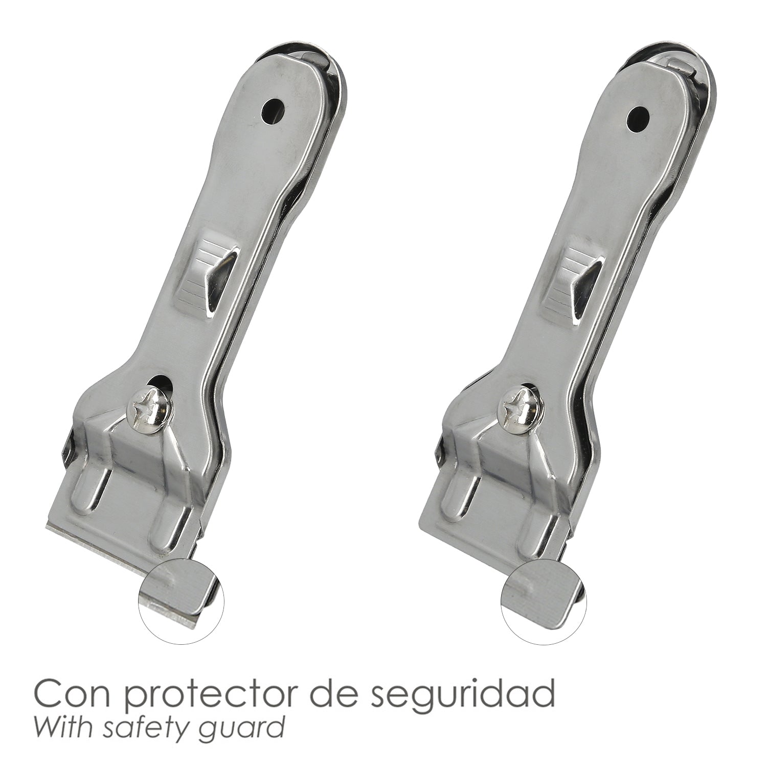 - El rasca vidrios cuenta con un protector deslizante, ocultando la cuchilla para prevenir cortes accidentales.