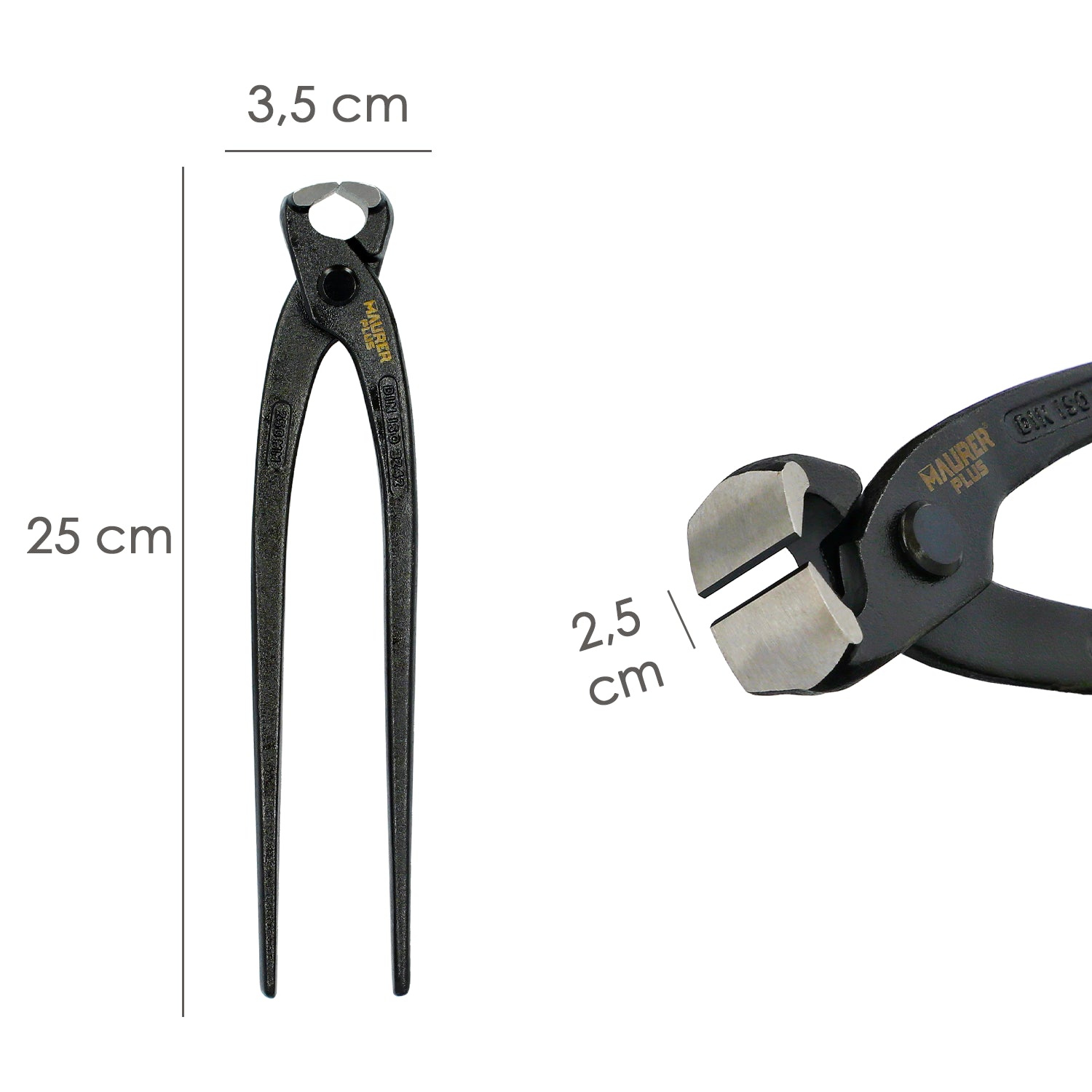 - El filo está pensado para agarre firme de materiales como alambre, barras pequeñas, pernos, clavos, etc. sirve para sujeción y doblado.