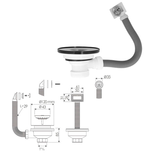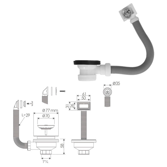 Valvula Fregadero Ø70 mm. 1 1/2" Con Rebosadero