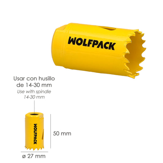 Serra de coroa bimetálica Ø 27 mm. Base Reforçada e Temperada Térmica. Coroa de madeira, furos de madeira, aço, ferro, plásticos