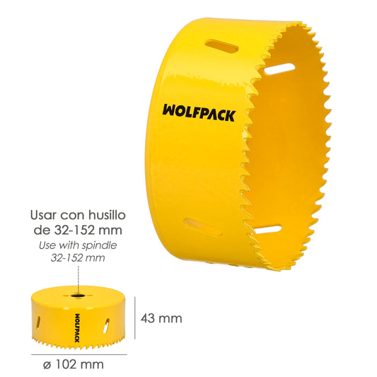 Serra de coroa bimetálica Ø 102 mm. Base Reforçada e Temperada Térmica. Coroa de madeira, furos de madeira, aço, ferro, plásticos