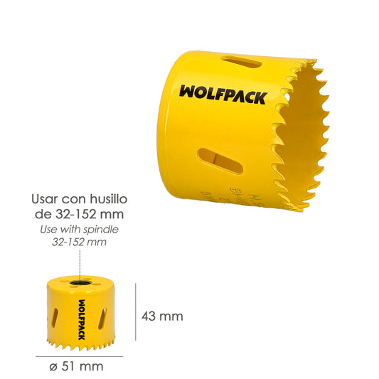 Serra de coroa bimetálica Ø 52 mm. Base Reforçada e Temperada Térmica. Coroa de madeira, furos de madeira, aço, ferro, plásticos