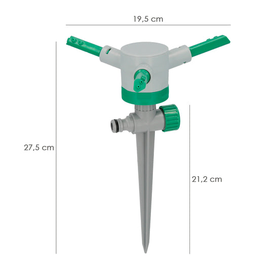 Aspersor de plástico de 3 braços com ponta e regulador de pressão.