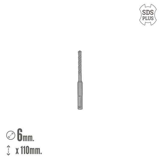 Broca Sds Plus 8 Filos Cortantes Especial Para Hormigon Armado Ø 6 x 110 mm. Broca Paredes, Broca Cimientos, Broca Muros